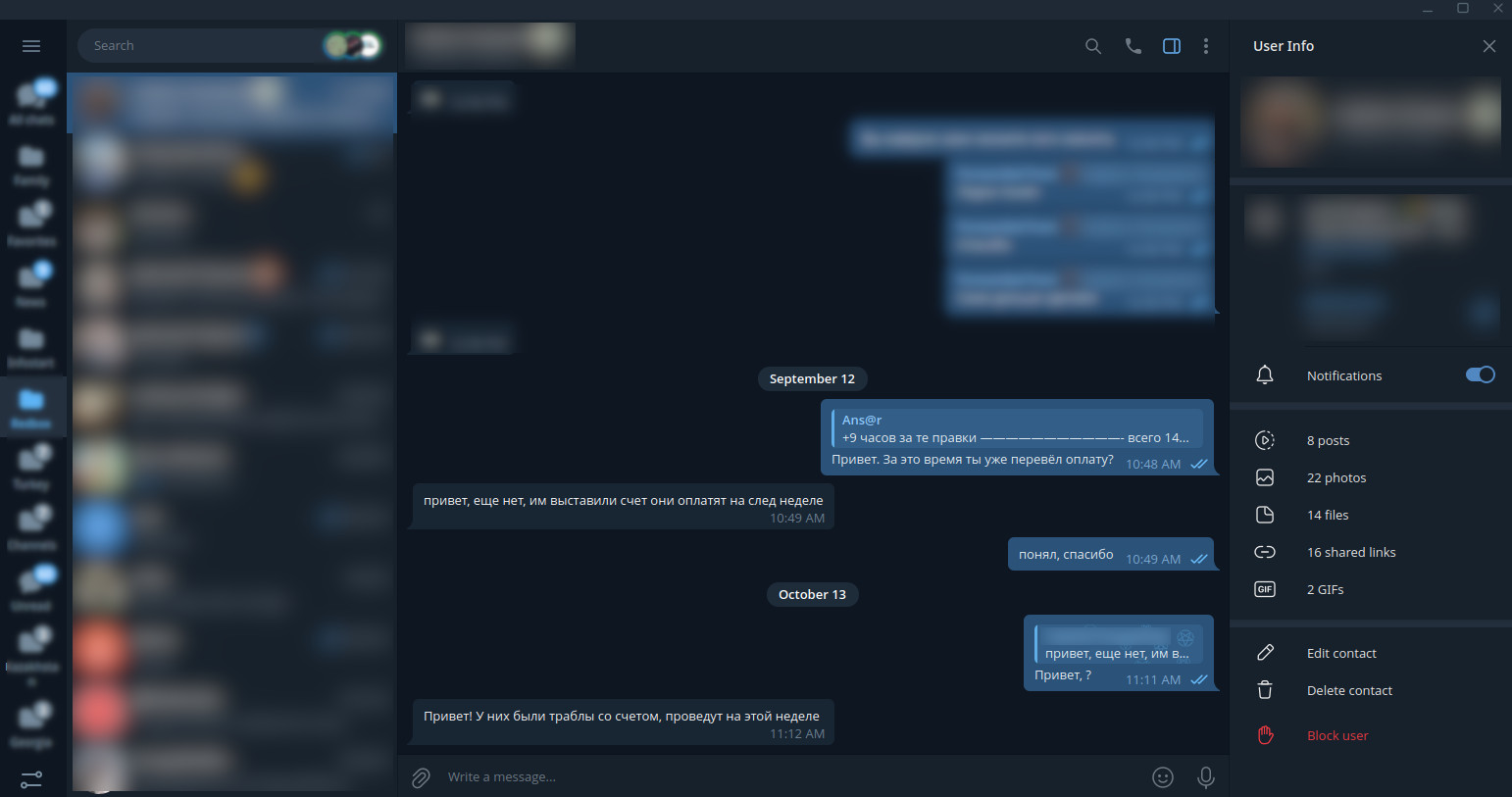 It’s our conversation on Telegram in Russian. In this conversation, he wrote that the owner couldn’t send him the money. The owner should send him the money first because he found this job and gave it to me. Therefore, first the owner should send him the money, and then he should send it to me