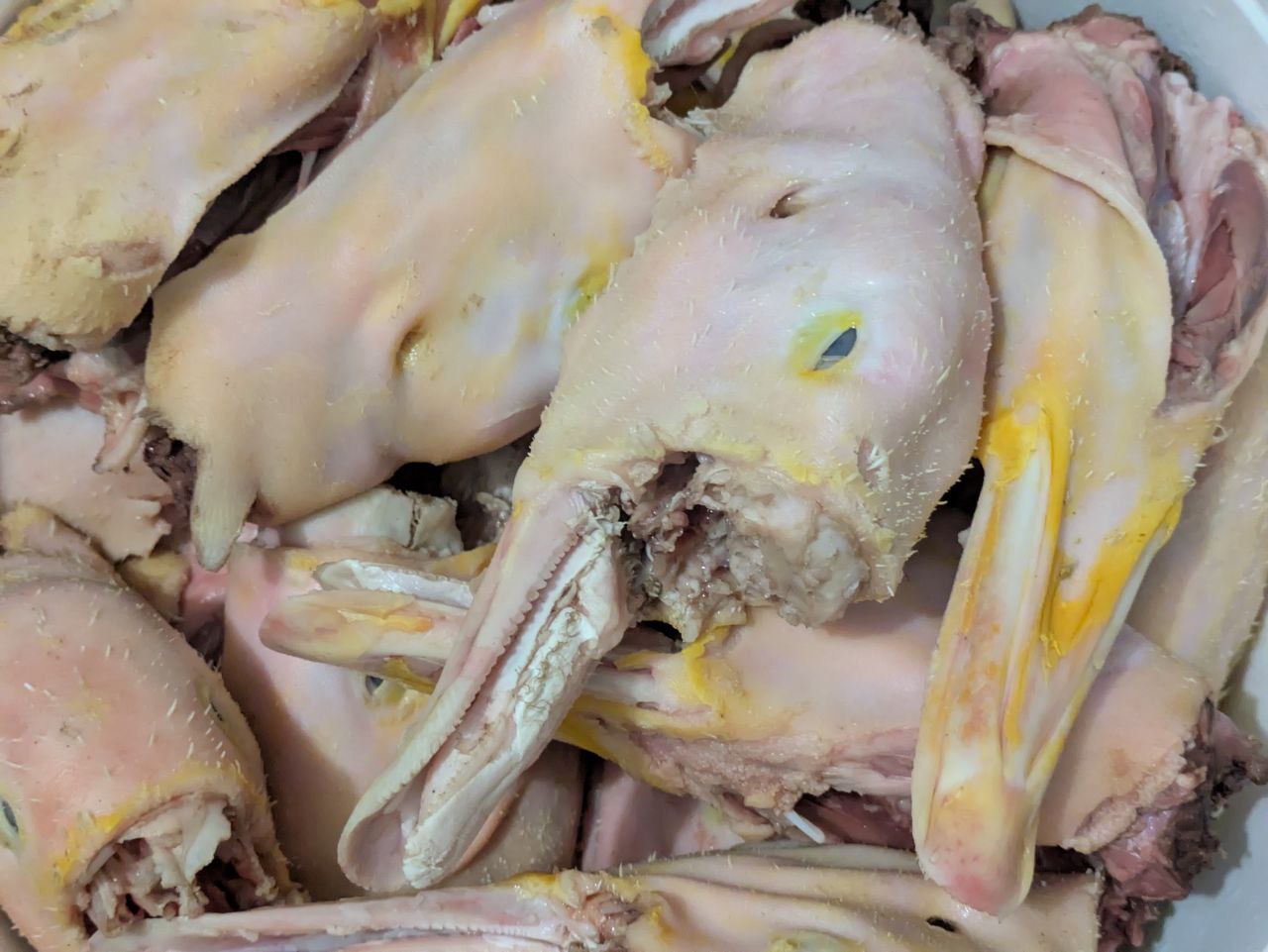 It’s just a delicacy—goose heads. I’ve never tried them and never want to. Also, look at their teeth: if one of them catches you, you could never escape