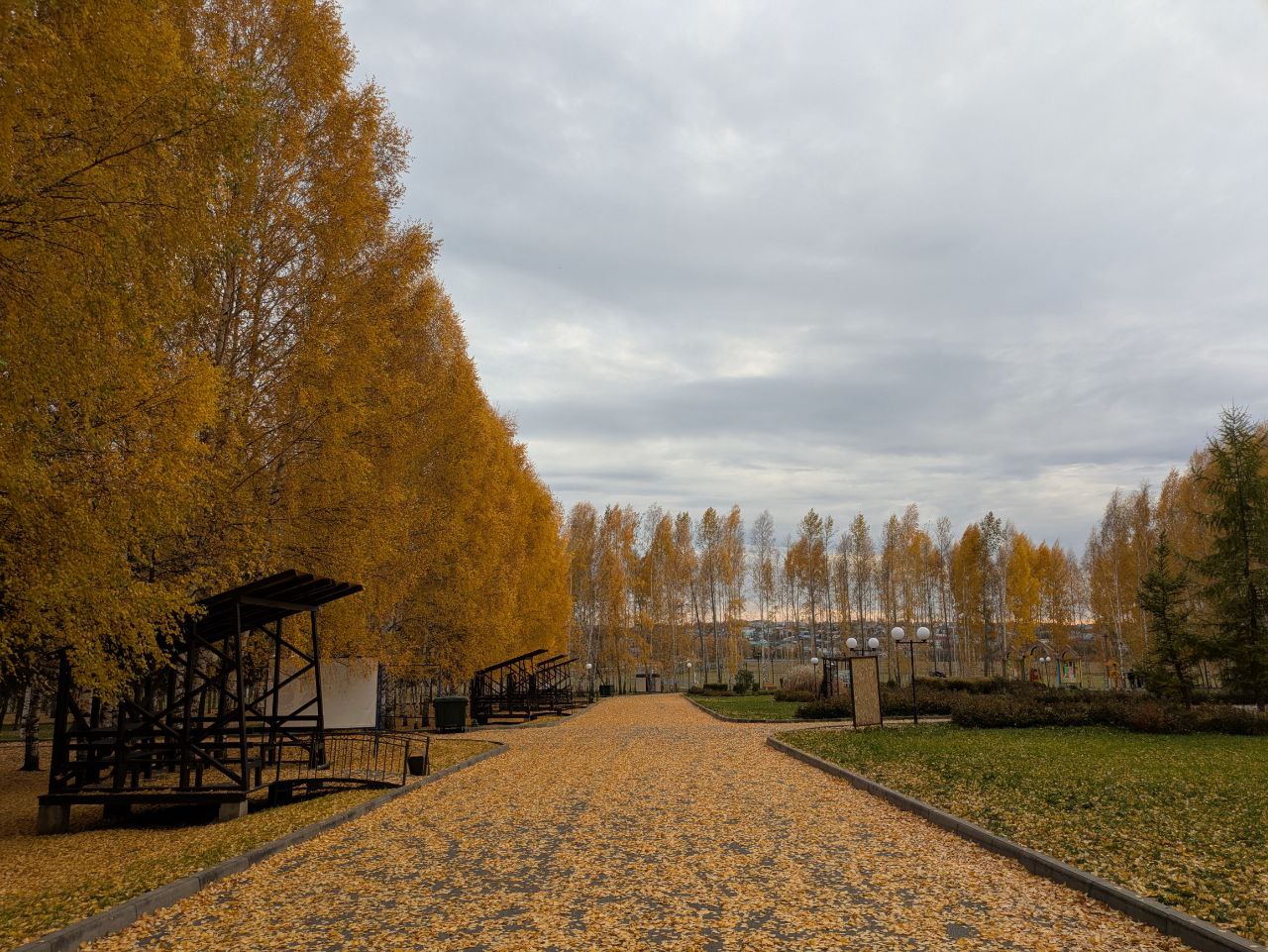 This is Sabantuy Park. Everything is yellow, and there are leaves everywhere