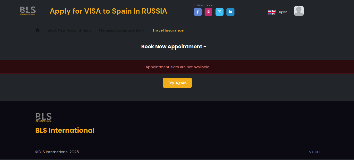 Yesterday I ended my day with visa appointments, and today started the same way — with my visa journey. Last night, I tried to make an appointment from 11 PM until 1 AM, but everything was unsuccessful. I saw the same errors again and again, and I couldn’t move past the appointment date selection. Today, the same story repeated. I woke up early in the morning and tried again, but unfortunately, I couldn’t make an appointment even though the site showed free and available dates. I just wasted all my time and nerves on it.